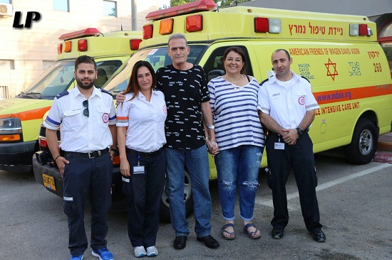 אירית, אשתו של אברהם, חשה חובת הכרת תודה לצוותי מד״א שהצילו את חיי בעלה ולא הרפו על אף הסיכויים הנמוכים: "ברגע ששמעתי את אברהם מתנשף הבנתי שמשהו לא תקין והזעקתי את מד"א. כלל הצוותים שהגיעו אלינו התנהגו בצורה שהיא לא פחות ממדהימה. על אף שידעו שמדובר בחולה מורכב הם לא הרפו ונלחמו על חייו במשך מעל ל-50 דקות. וכמובן שאי אפשר להתעלם מהיחס האנושי שלהם אליי ואל הבת הקטנה שלי שהייתה בבית, תוך כדי האירוע. הפאראמדיקים לקחו אותנו לשיחה והרגיעו אותנו, עד כמה שהיה ניתן, תוך כדי הטיפול. הבחירה של הצוות להילחם עד אפס סיכוי, לא מובנת מאליה ומוכיחה את החשיבות והמהות שבעבודה של מד״א. היה לנו חשוב להיפגש ולהודות לצוותים שהצילו את החיים של אברהם ונלחמו ללא לאות. פשוט תודה לכם על הבחירה להילחם מידי יום כנגד המוות".