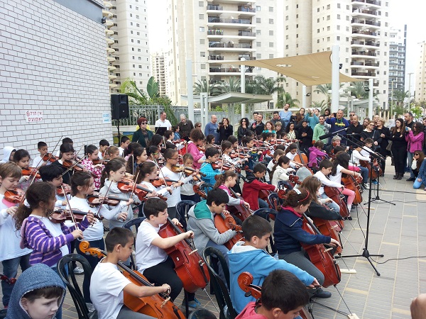 מאות אנשים התרכזו הבוקר ברחבה הגדולה בשכונת אם המושבות החדשה בפ"ת, כדי להאזין לקונצרט בביצוע תלמידי בי"ס אהוד מנור שבשכונה.