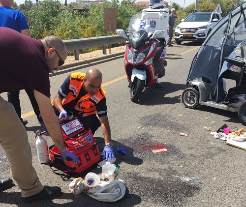 יענקי ויינברג, חובש ביחידת האופנועים של איחוד הצלה שנתקל בתאונה, סיפר: "תוך כדי נסיעה נתקלתי בקלנועית שהתהפכה עקב פגיעת משאית. עצרתי בצד הדרך והתחלתי להעניק טיפול רפואי לקשיש שרכב על הקלנועית שמעוצמת הפגיעה איבד את ההכרה. כמו כן הענקנו בזירה סיוע רפואי ראשוני לנהג המשאית ולקשישה שהייתה גם בקלנועית שנפצעו באורח קל".